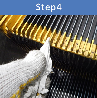 通常のメンテナンスでは手が行き届かず清掃が困難なエスカレーターステップの汚れは、弊社にお任せください。