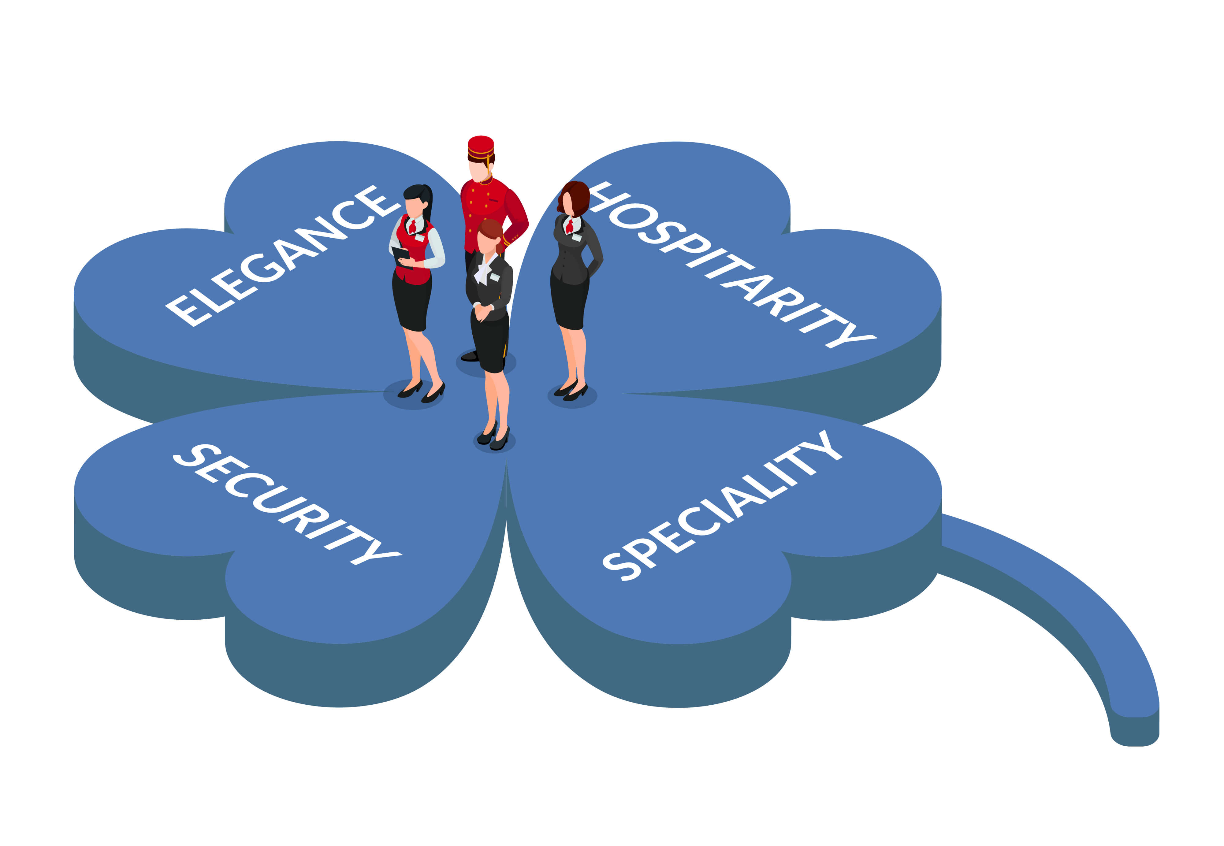 徹底した訓練・指導によって身に付けた、上品でしなやかな立居振舞によって建物・施設の顔としての確かな存在感を発揮いたします。
